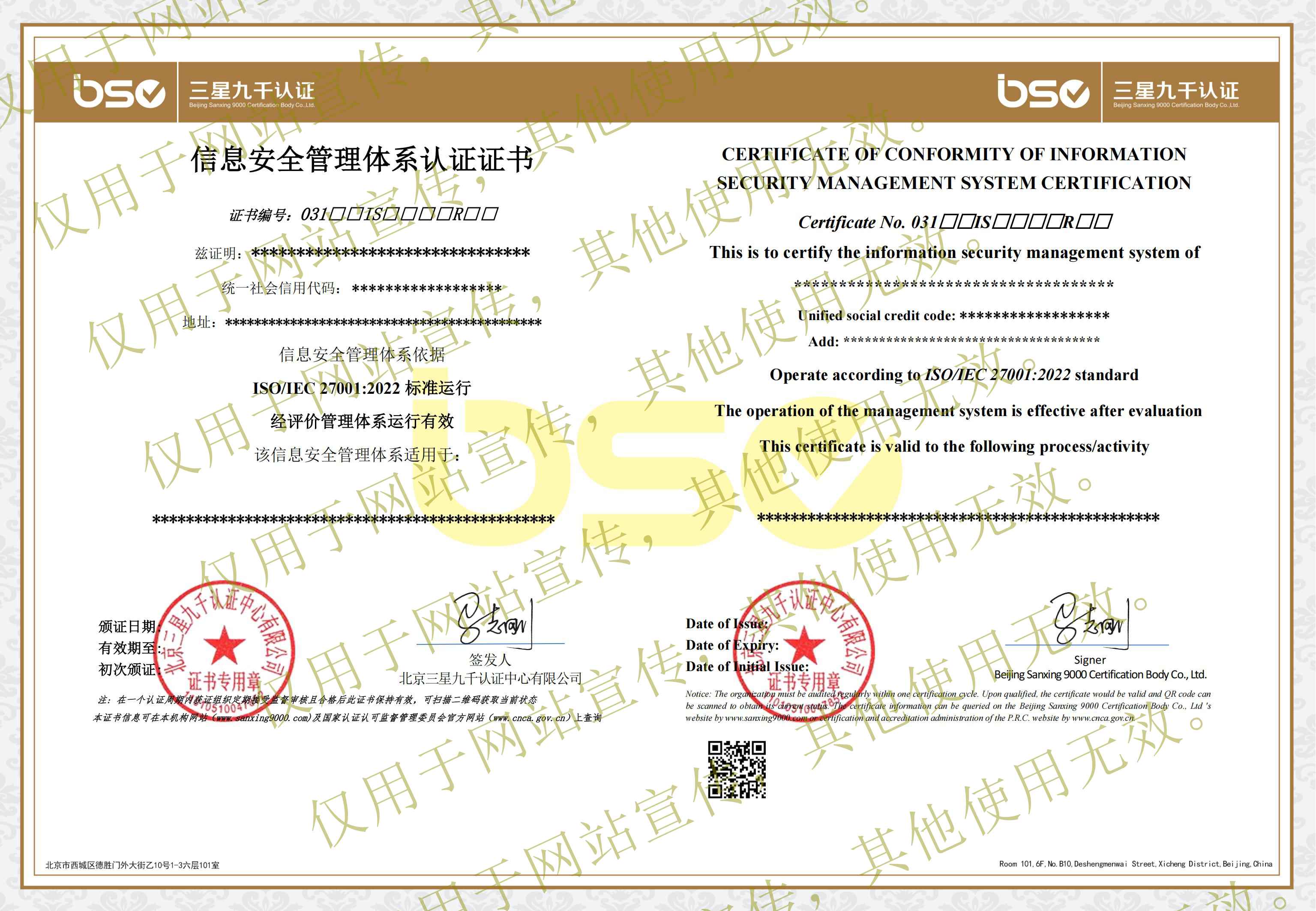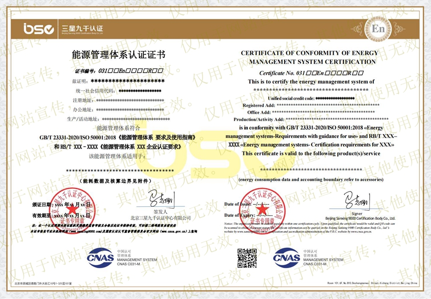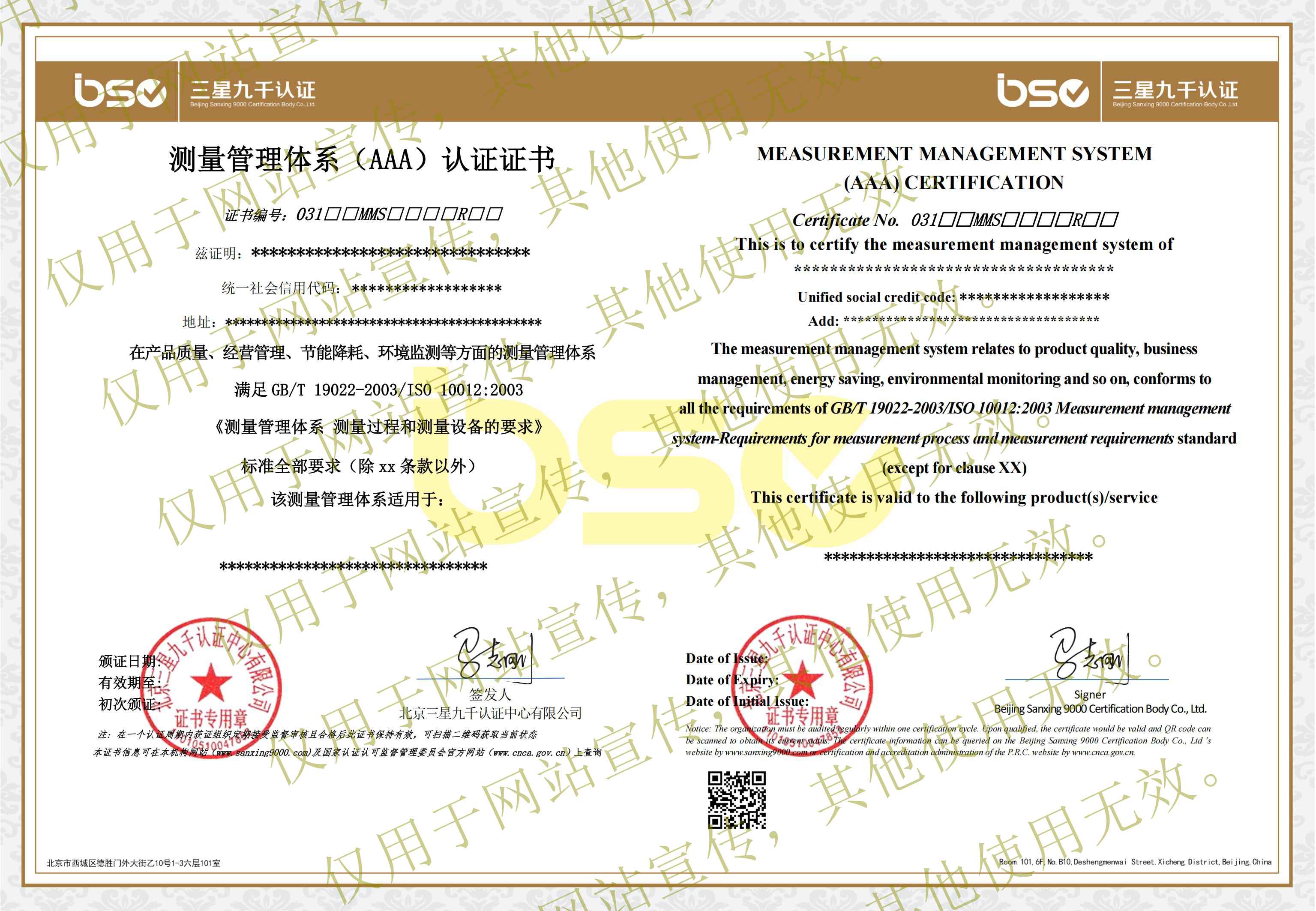 資產(chǎn)管理體系認(rèn)證證書樣本