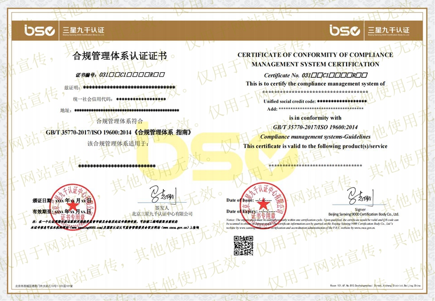 社會責(zé)任管理體系認(rèn)證證書樣本