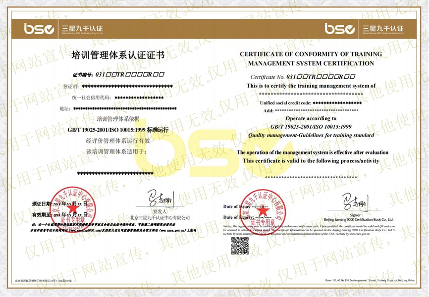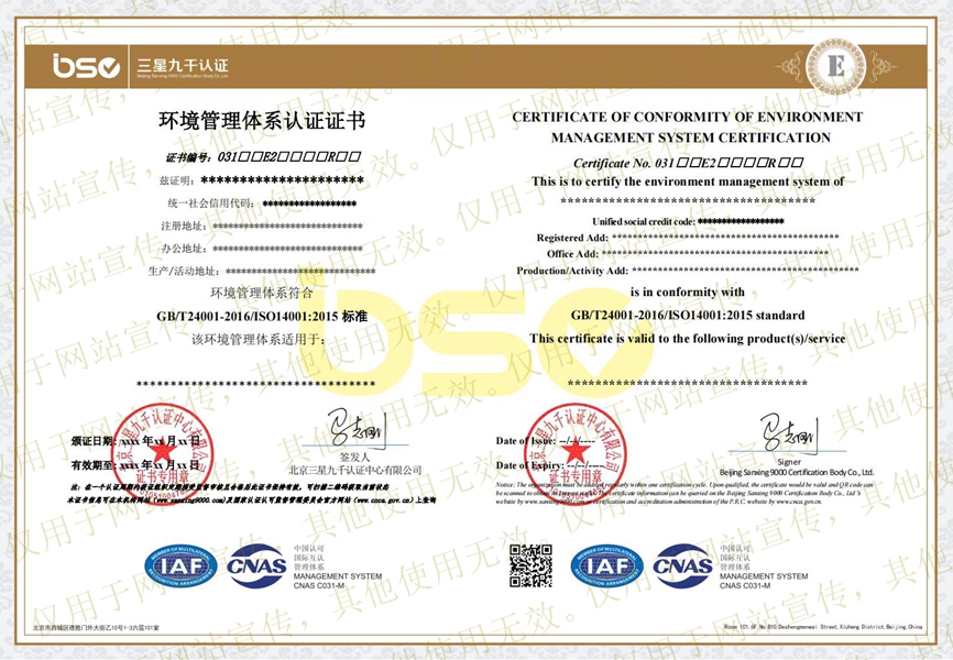 職業(yè)健康安全管理體系認(rèn)證證書樣本