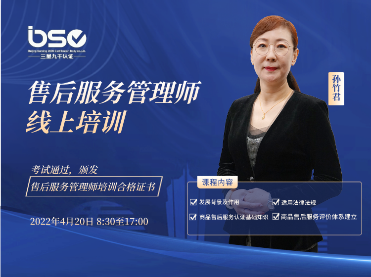 為促進獲證組織管理體系積極履行社會責任,幫助獲證組織培養(yǎng)優(yōu)秀管理人才,2022年4月15日至20日,北京三星九千認證中心有限公司結合客戶需求,連續(xù)開展社會責任管理體系、商品售后服務管理體系兩期免費公益培訓及一期售后服務管理師培訓,相關企業(yè)的各級管理人員踴躍參加。培訓由三星九千技術總監(jiān)孫竹君授課。