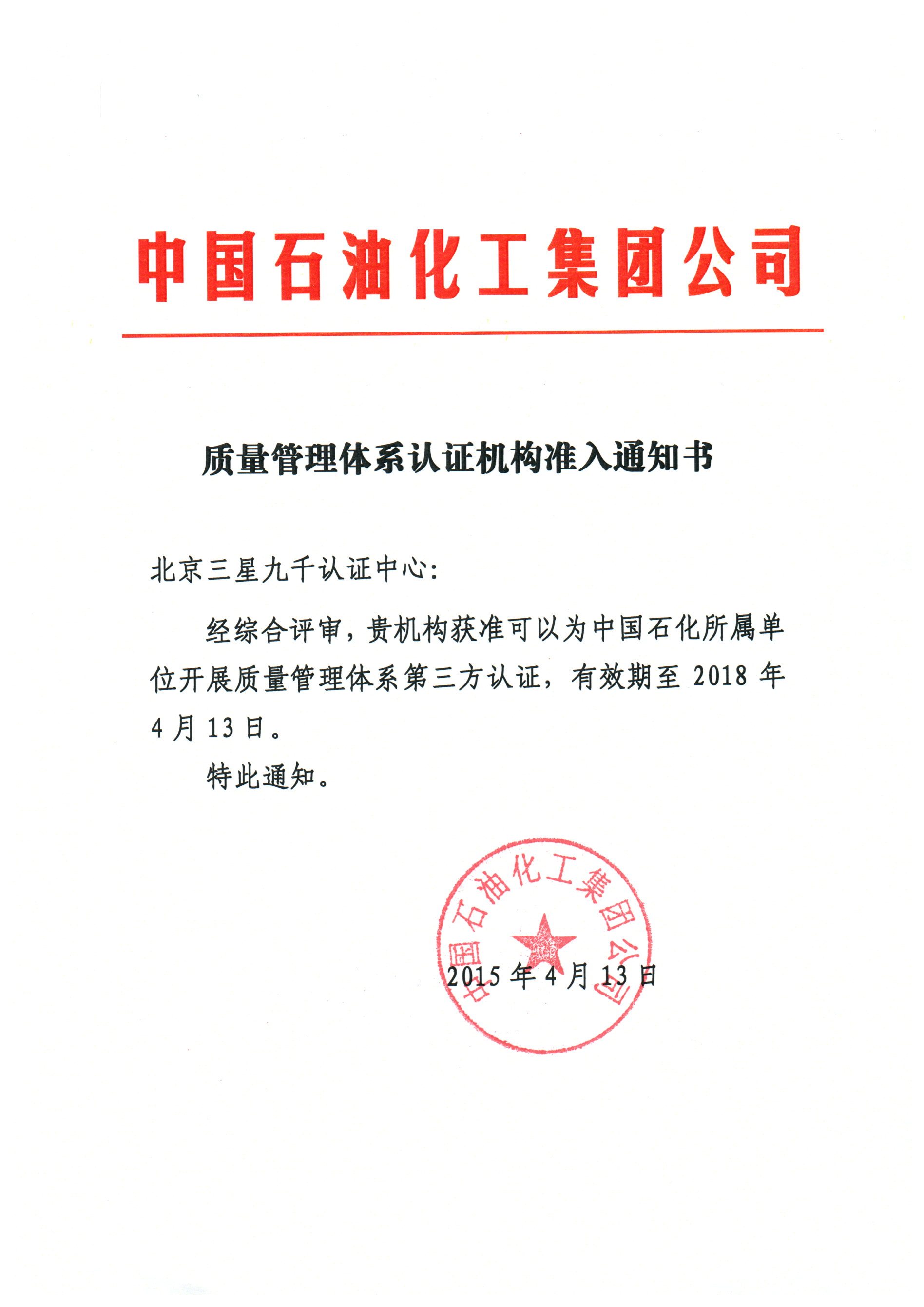2015年4月20日中國石化集團公布了第二輪準入的12家認證機構(gòu)名單,認證機構(gòu)按照綜合評分降序排名,我中心名列第一。