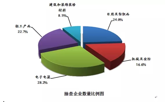 2015年12月至2016年2月,質(zhì)檢總局組織開展了2016年第1批針織內(nèi)衣等25種產(chǎn)品質(zhì)量國家監(jiān)督抽查,涉及日用及紡織品、電子電器、輕工產(chǎn)品、建筑和裝飾裝修材料、機(jī)械及安防等5類產(chǎn)品。