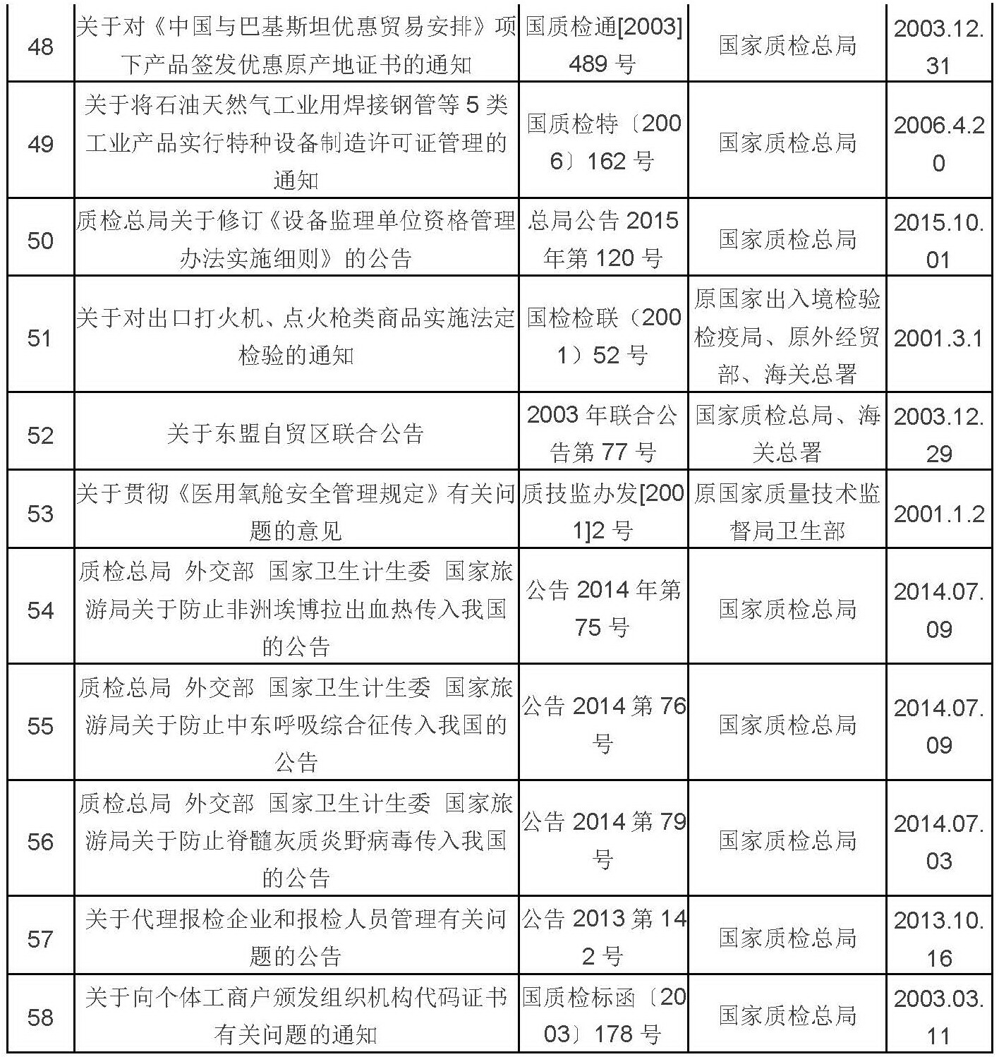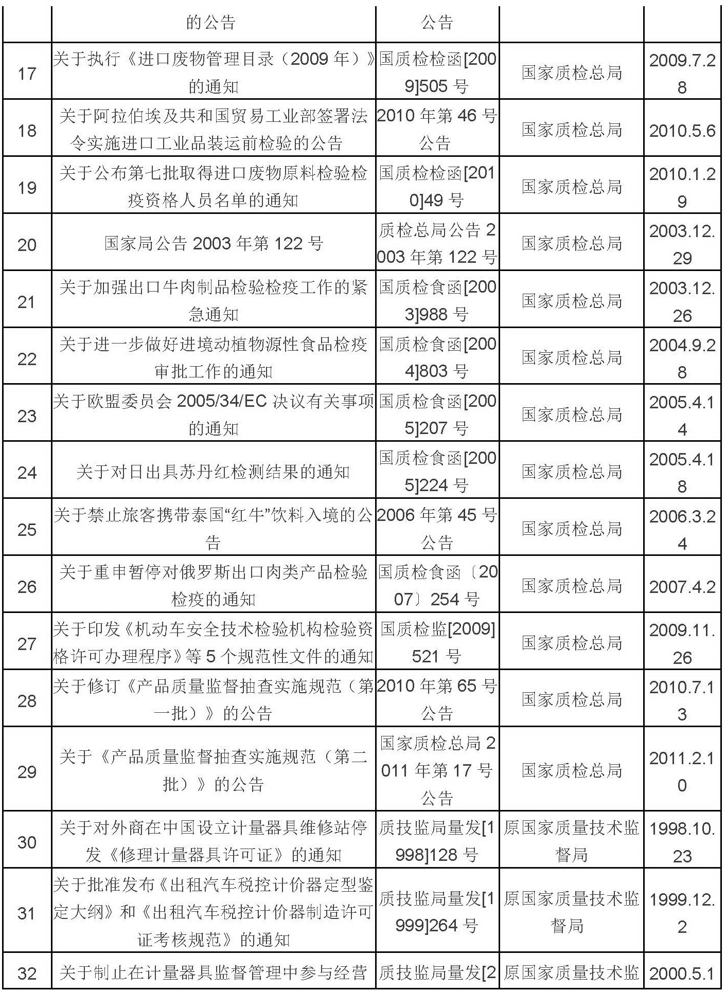 質(zhì)檢總局廢止規(guī)范性文件目錄
