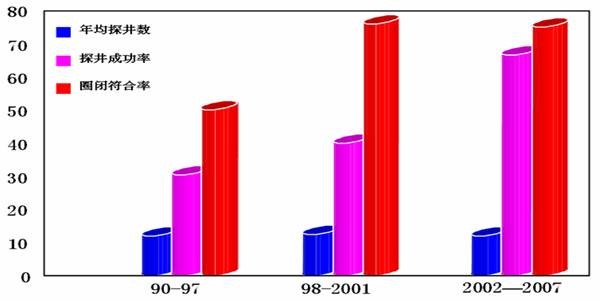 1、技術(shù)創(chuàng)新管理取得了新成效!笆晃濉币詠,物探院針對蘇北盆地油氣勘探的難點(diǎn),以解決生產(chǎn)實(shí)際的技術(shù)瓶頸為切入點(diǎn),大力實(shí)施科技攻關(guān)。在全院科研人員的共同努力下,共計(jì)承擔(dān)了集團(tuán)公司級課題11項(xiàng),局級課題42項(xiàng),院級65項(xiàng)課題。先后取得了“全三維地震勘探技術(shù)研究與應(yīng)用”、“準(zhǔn)噶爾地區(qū)高分辨率地震采集處理方法研究”、“轉(zhuǎn)換波勘探技術(shù)研究與應(yīng)用”、“漢留斷裂帶復(fù)式油氣藏成藏及分布規(guī)律研究”等一批優(yōu)秀科研成果。其中,省部級科技進(jìn)步獎(jiǎng)9項(xiàng);局級科技進(jìn)步獎(jiǎng)30項(xiàng)。形成了以全三維勘探技術(shù)、西部高分辨率處理及隱蔽油藏解釋技術(shù)、轉(zhuǎn)換波勘探技術(shù)、小斷塊油藏解釋綜合評價(jià)技術(shù)、低信噪比資料處理技術(shù)等為代表的特色技術(shù)系列,達(dá)到了國內(nèi)領(lǐng)先水平。圈閉鉆研符合率、探井成功率穩(wěn)步提升,油氣產(chǎn)量已由會戰(zhàn)初期的0.6萬噸上升為目前的170.2萬噸,(見下圖)為油田探明儲量連續(xù)十二年超千萬噸,提供了有力的技術(shù)支撐。